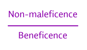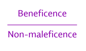 It should now be clear that thinking in terms of benefits and harms is central to fulfilling a healthcare professional’s duty to promote patient well-being. However, even if you are able to identify all the relevant benefits and harms, more guidance is still needed in order to know how to best sort through these considerations in making a judgement about what action to take. To provide a framework for thinking about how to organize and weigh these and other relevant considerations, we can utilize the “bioethical principles.”[1] There are four major bioethical principles, but in this Module, we’ll focus on understanding and applying just two: the principle of beneficence and the principle of non-maleficence.