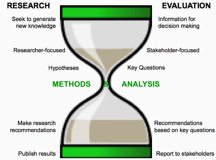 The goals, objectives, and methods of evaluation research and intervention research often appear to be very similar. In both cases, systematic research procedures are applied to answer questions about an intervention. However, there exist important differences between evaluation and research to consider, important because they have implications for how investigators and evaluators approach the pursuit of evidence.